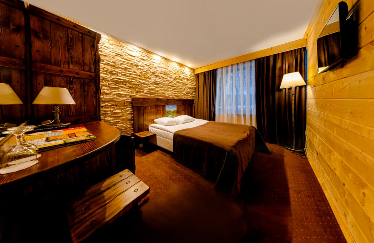 В номерах Standart установлены кровати-трансформеры, которые можно раздвинуть, или одна двуспальная. Возможно размещение 1 доп. места или детской кроватки-люльки. Площадь номера – около 14 кв. м.